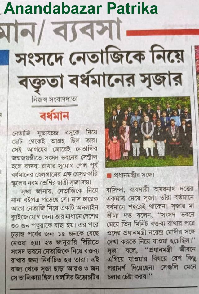 Impressive Speech on Netaji by Srija Dutta of Class - IX of Delhi Public School, Belgram, Burdwan in the presence of Honorable Prime Minister Sri Narendra Modi -1